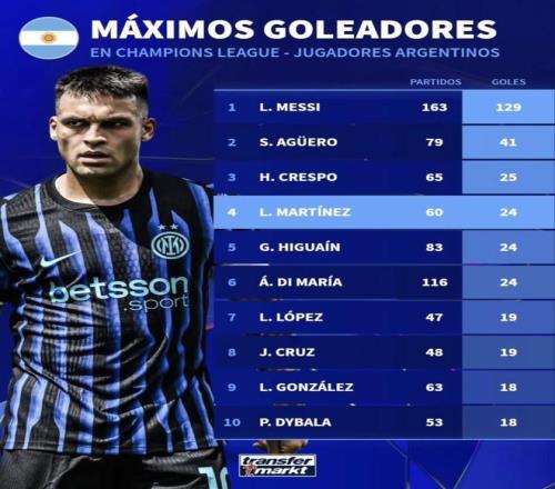 阿根廷球员欧冠进球榜!迪玛利亚五场比赛才进一球效率排最后