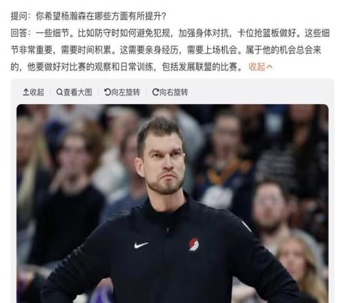 杨瀚森前途未卜,开拓者主帅发话:他需做好3点,才能立足NBA
